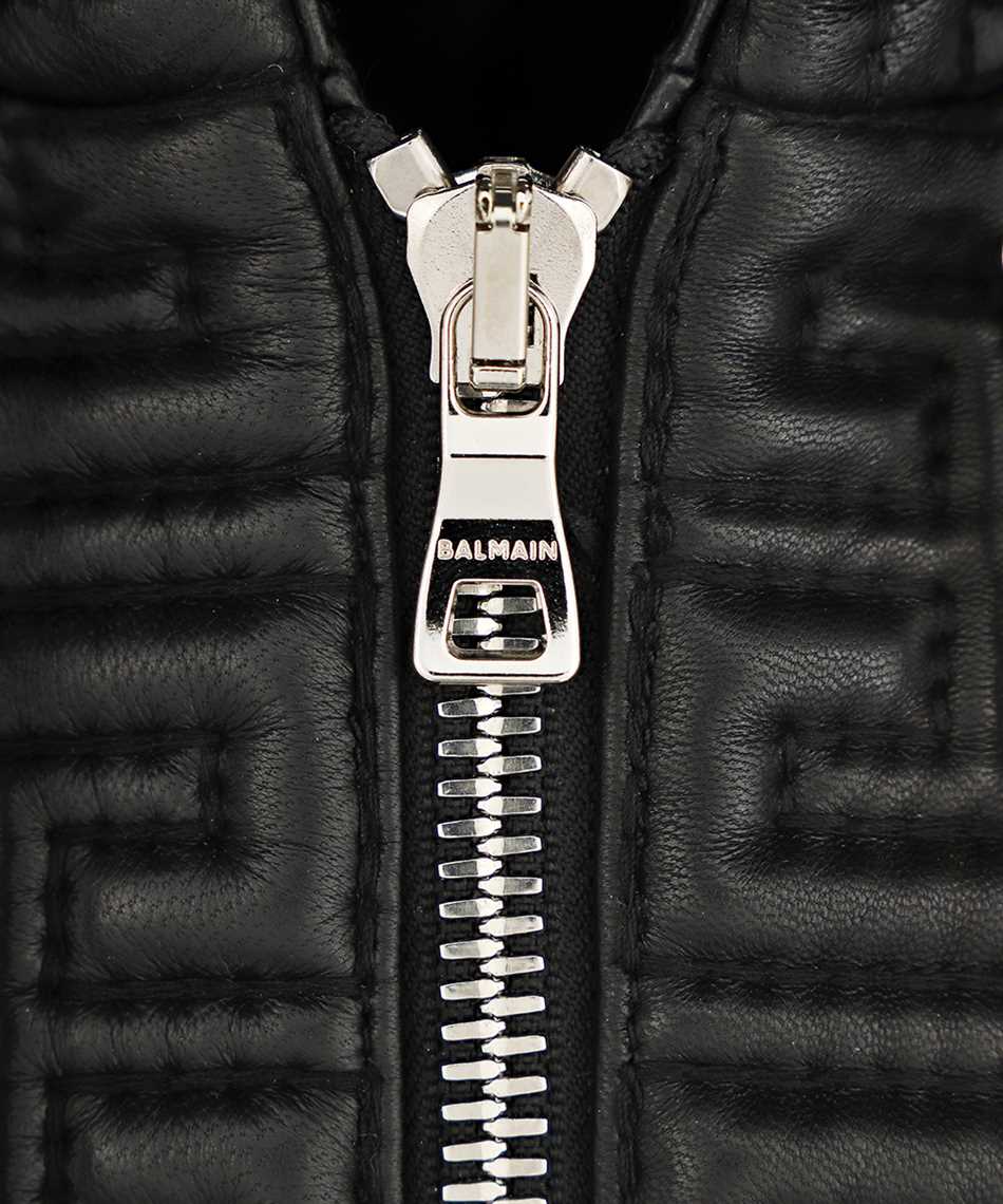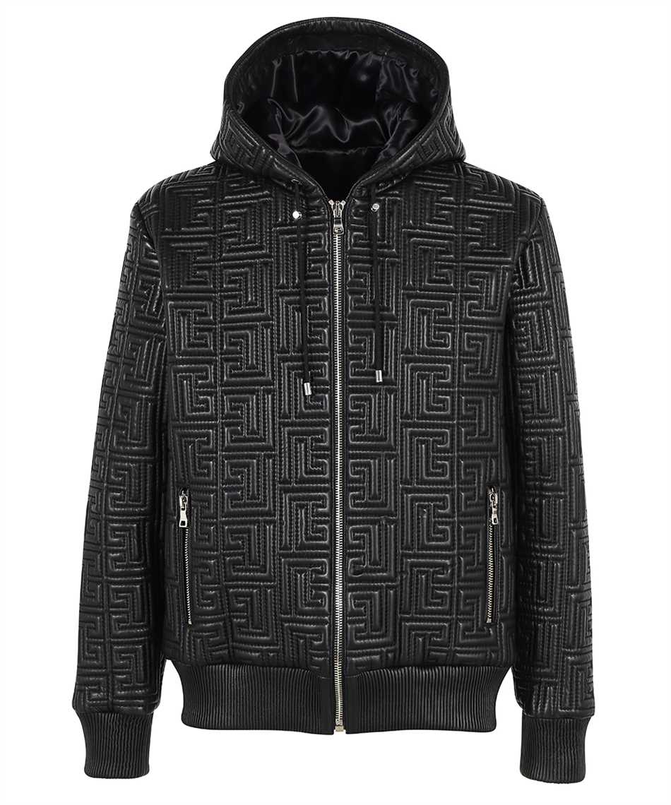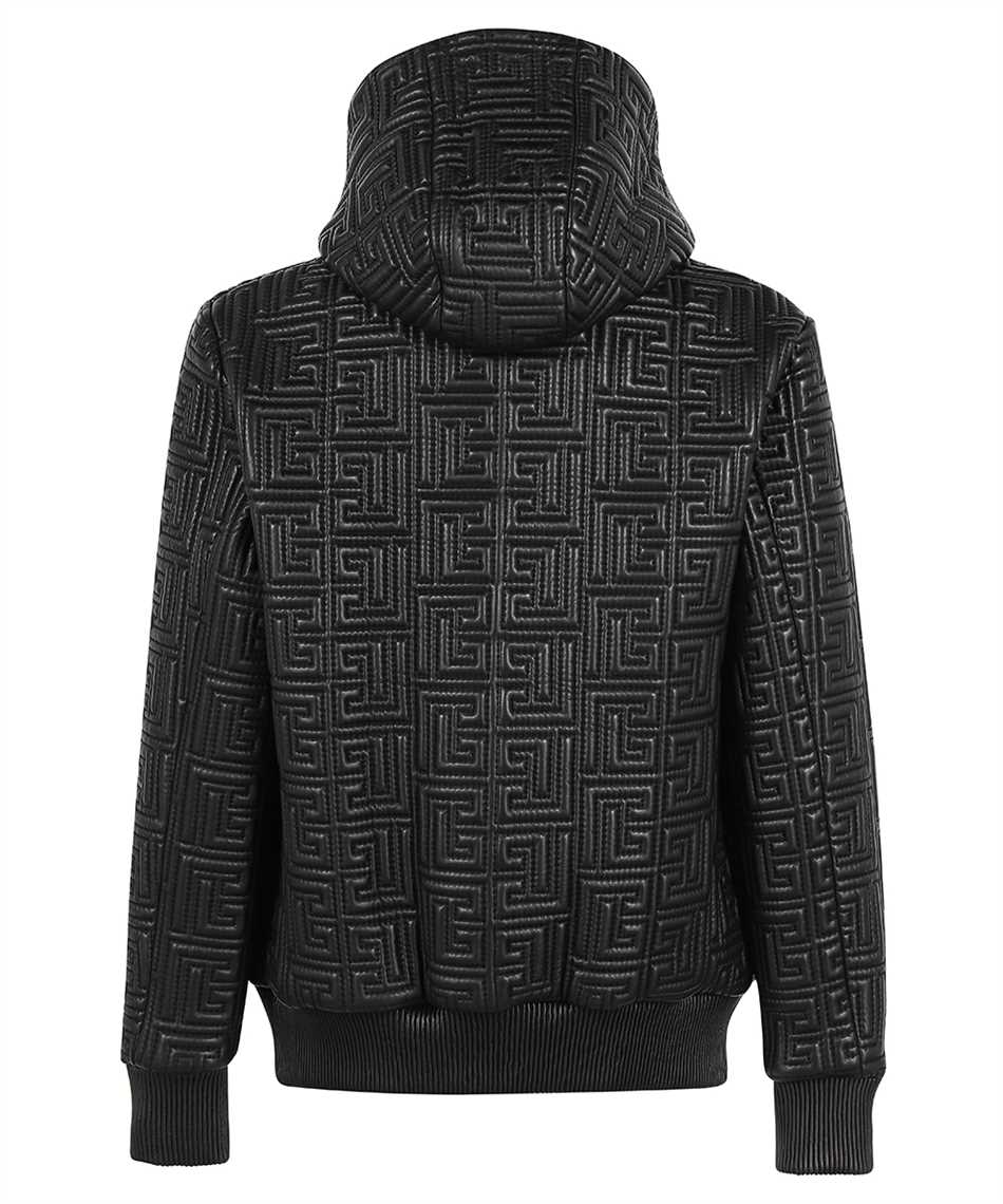 Balmain XH1TH120LB23 QUILTED ZIPPED MONOGRAM LEATHER Kapuzen-Sweatshirt - Schwarz