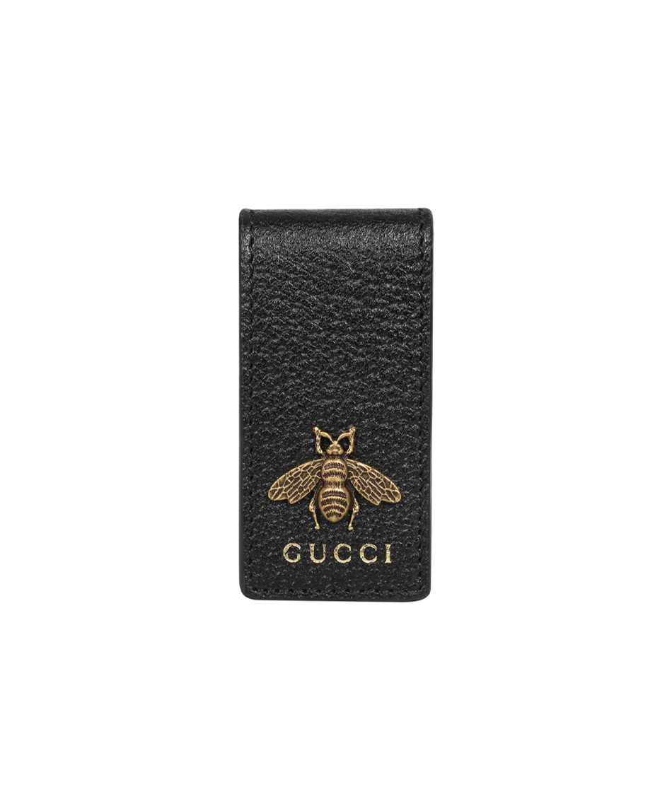 Gucci 522914 DJ20T ANIMALIER LEATHER MONEY CLIP Wallet - Black